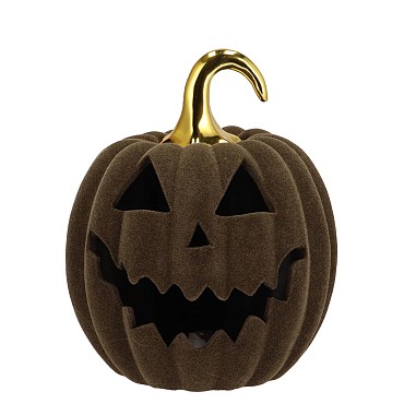 AUTUMN FLOCK SCOTTISH GREEN PUMPKIN FACE LED 15X15X17CM