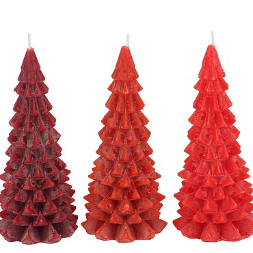 CANDLE FROSTY X-MAS TREE WILD RED MIX 8X16CM ASS