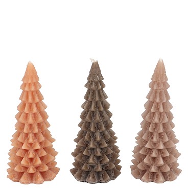 CANDLE FROSTY X-MAS TREE WOODS BROWN MIX 6X12CM ASS NM